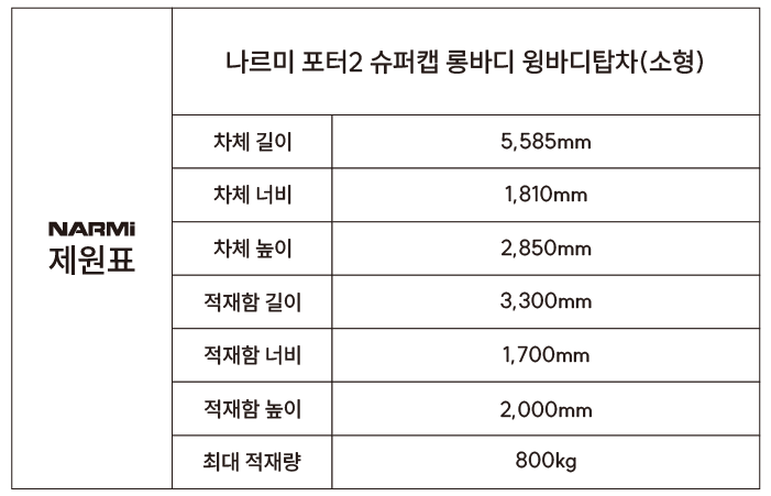 · 외관 : 자외선 차단 유리(앞), 선셰이드 적용 앞면 유리, 적재함 브림커버