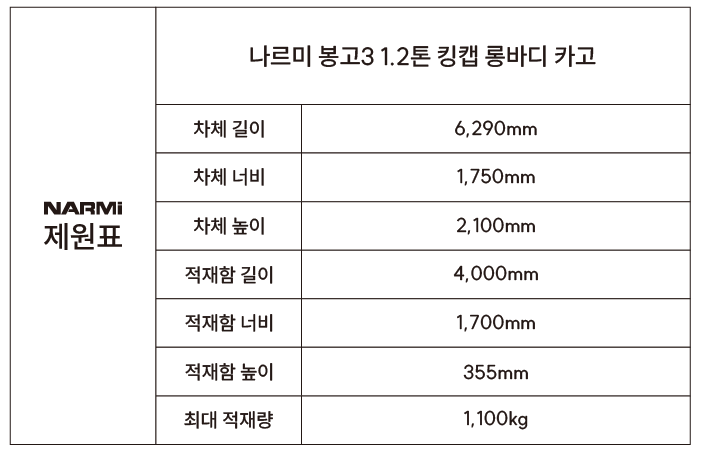 ▶봉고3 1.2톤 2WD 킹캡 롱바디 카고트럭 제작