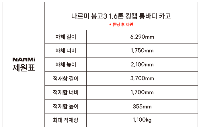 •중형화물 (1.6톤 증톤 인증 선택)