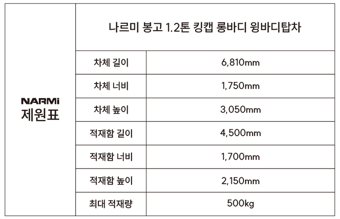 ▶봉고3 1.2톤 킹캡 롱바디 윙바디탑차 제작