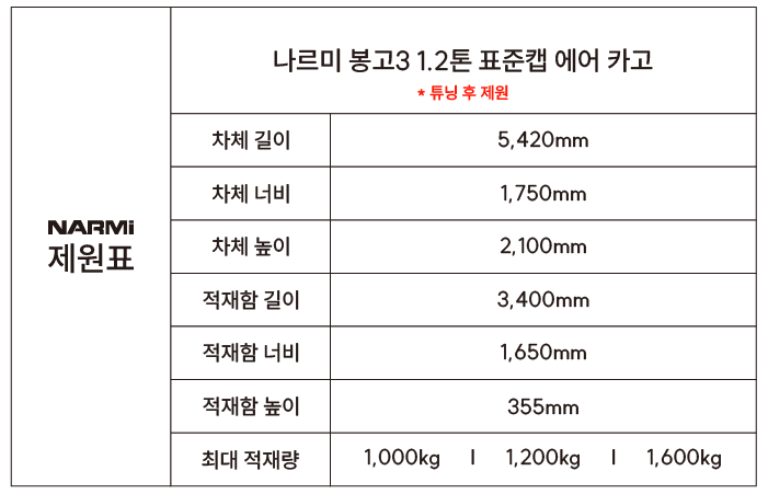 ▶봉고3 1.2톤 2WD 표준캡 롱바디에어솔루션 섀시캡 제작