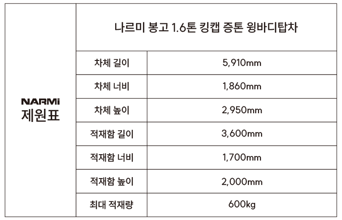 ▶봉고3 1.6톤 킹캡 증톤 윙바디탑차 제작