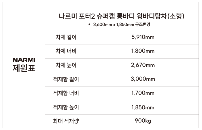 ▶1.3톤 포터 슈퍼캡 롱바디 윙바디탑차 제작
