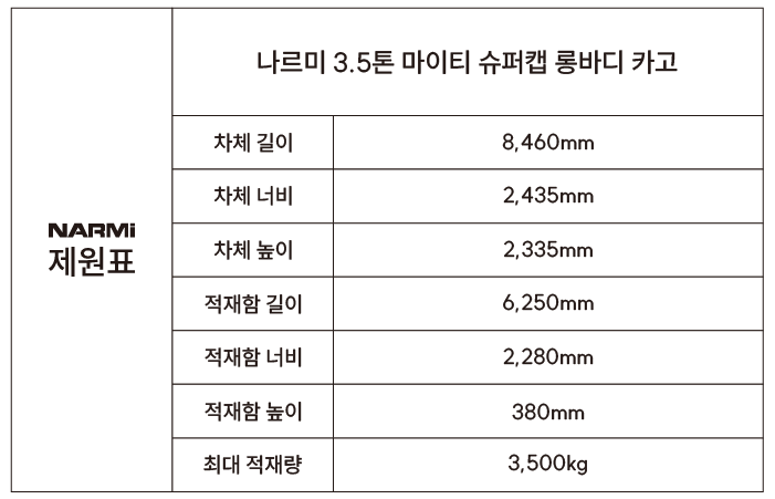 •카고 적재함 [6,250mm x 2,280mm x 380mm]