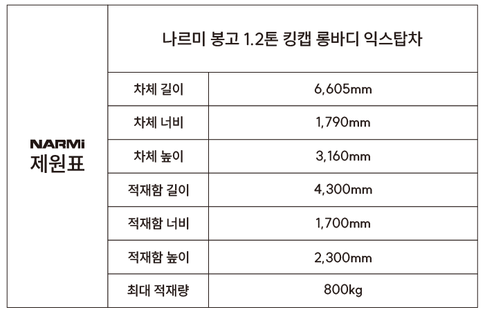 ▶나르미 1.2톤 봉고 킹캡 롱바디 익스탑차 제작