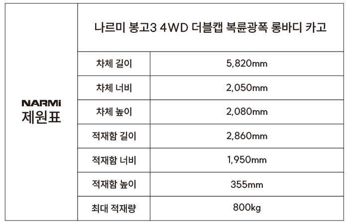 ▶봉고3 4WD 더블캡 복륜광폭 롱바디 카고 제작