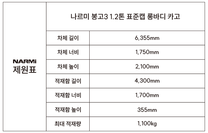 •카고 적재함 [4,300mm x 1,700mm x 355mm]