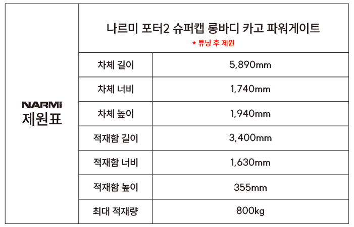 ▶포터2 슈퍼캡 롱바디 카고 파워게이트 제작