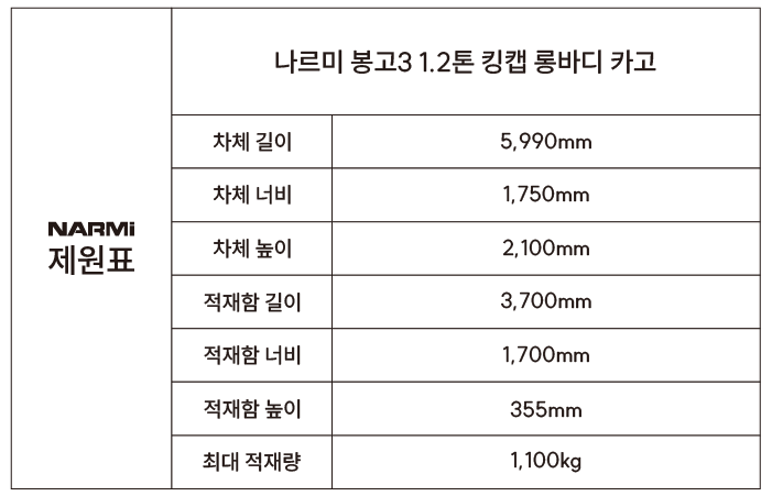 •스틸 적재함 기본적용(알루미늄 적재함 변경 가능)