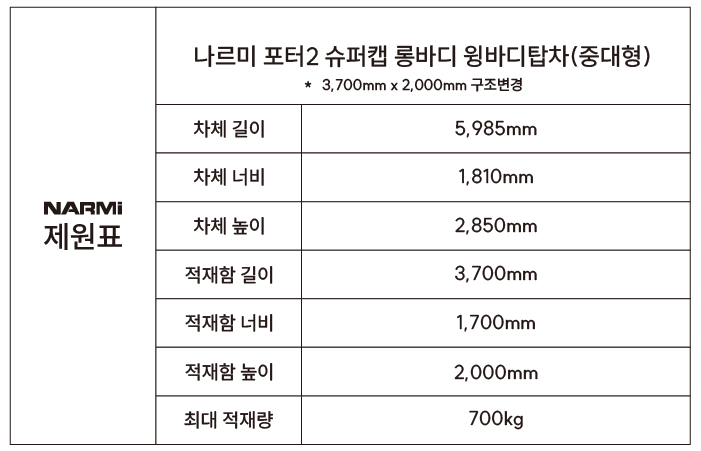 ▶포터2 슈퍼캡 롱바디 윙바디탑차 제작