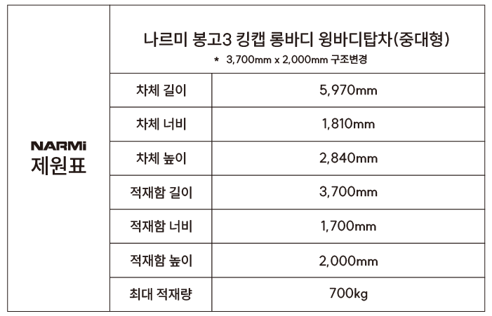 •윙바디탑차 유압식 제작 [3,700mm x 1,700mm x 2,000mm]