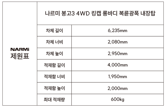 ▶봉고3 1톤 4WD 킹캡 롱바디 복륜광폭 내장탑차 제작