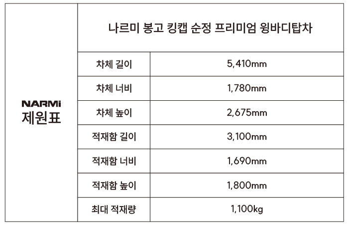 ▶봉고 킹캡 순정 프리미엄 윙바디탑차 제작